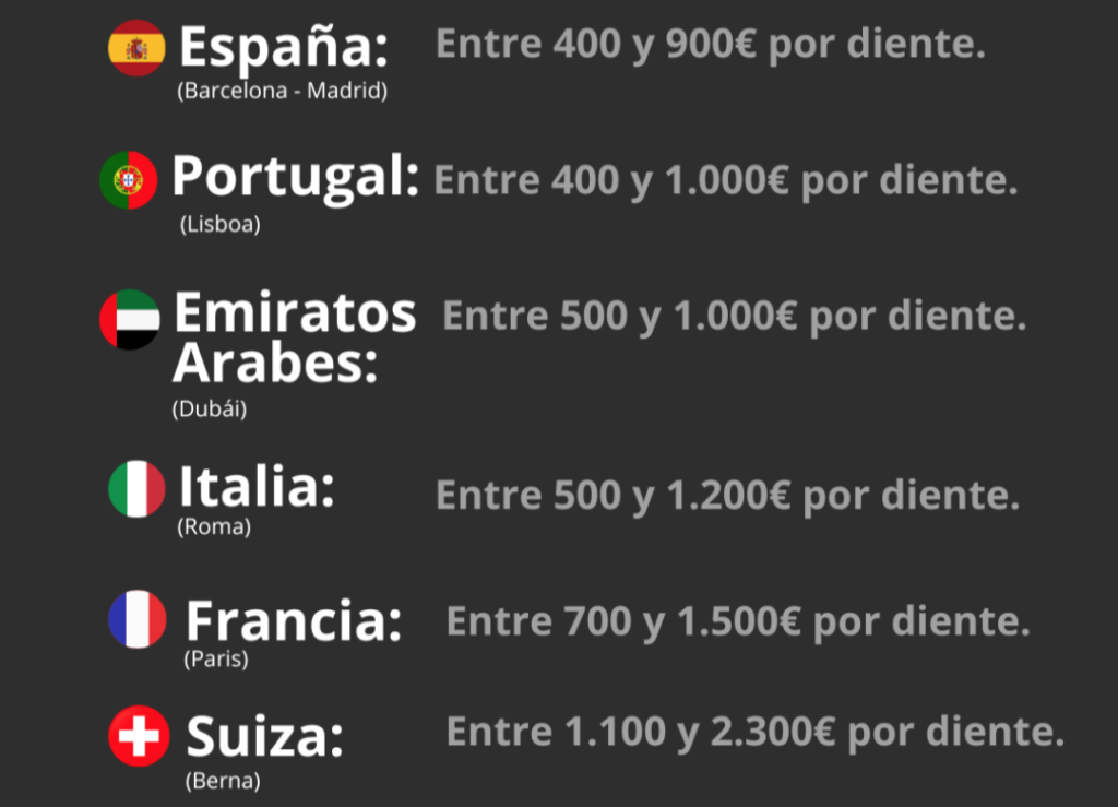 Los precios de las carillas de cerámica varían considerablemente según el país.